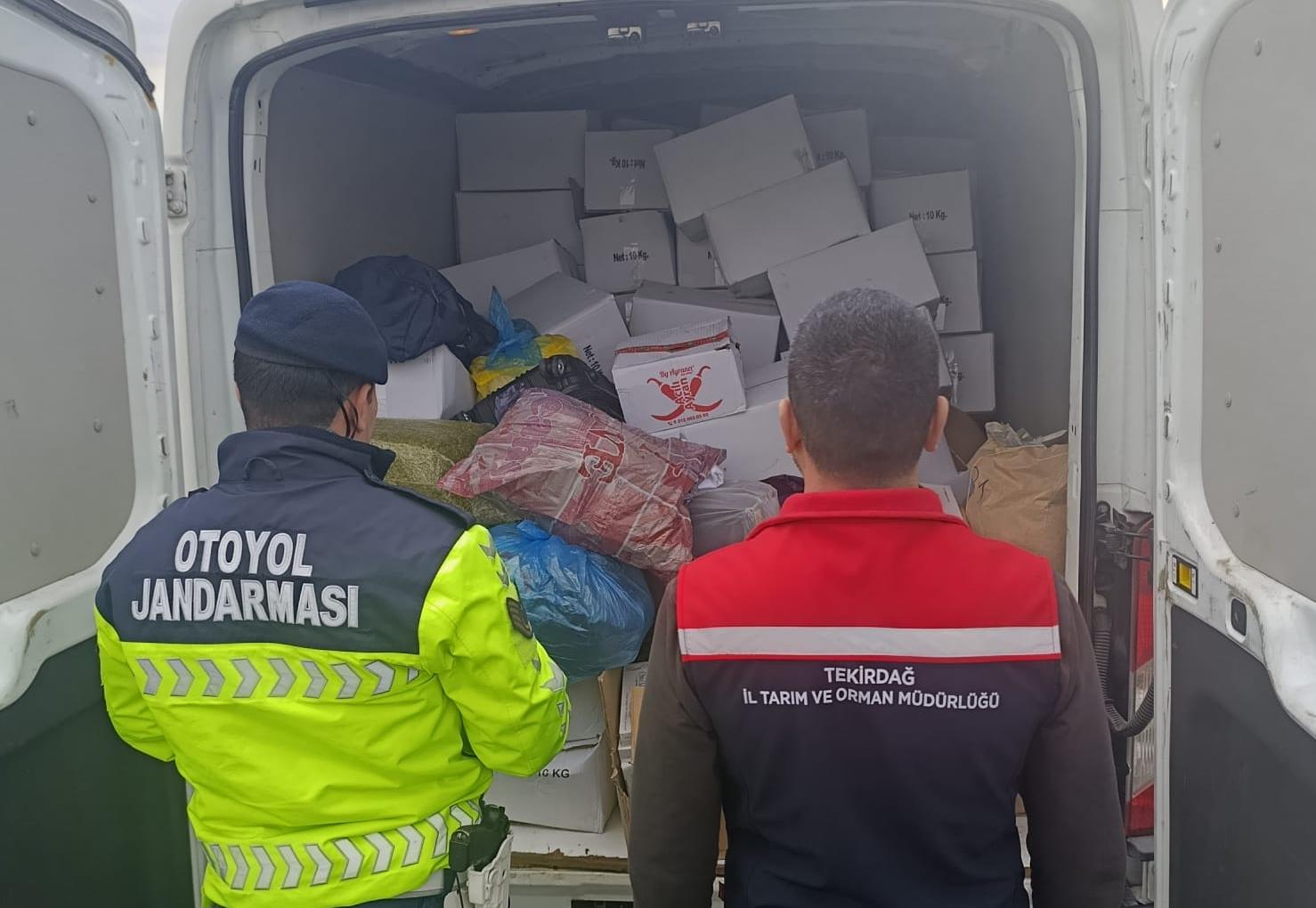 İl Tarım ve Orman Müdürlüğünden yapılan yazılı açıklamaya göre, Tekirdağ Otoyol Jandarma Komutanlığı ekiplerince şüphe üzerine durdurulan bir minibüste yapılan kontrolde, ürünlerin gıda güvenliği kurallarına uygun olmayan şartlarda taşındığı belirlendi.
