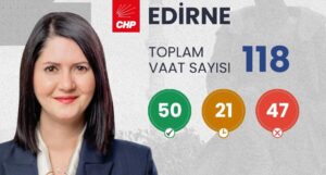 Türkiye’de ‘Ne dedi ne yaptı’ platformu, Edirne Belediye Başkanı Filiz Gencan’ın göreve geldiğinden bu yana gerçekleştirdiği vaatlerini mercek altına aldı. Gencan’ın iki yıllık hizmet karnesinde 11 adet vaadin 50’sini gerçekleştirdiği, 21’inin yapılma aşamasında olduğu, 47’sinin ise henüz yapılmadığı ifade edildi.
