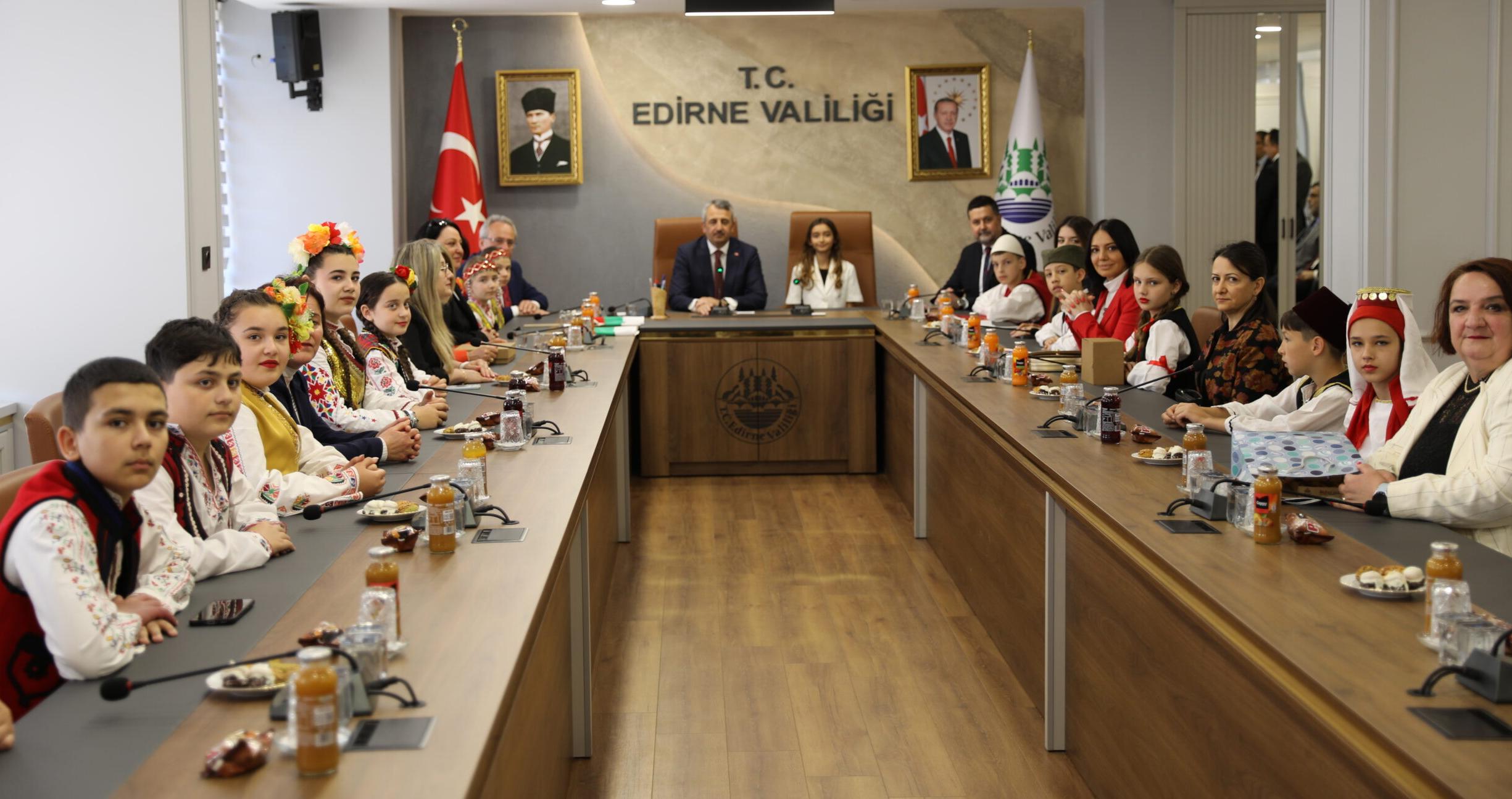 Edirne’de 23 Nisan Ulusal Egemenlik ve Çocuk Bayramı töreni temsili olarak Valilik makamına oturacak Kırkpınar Ağası Alper Yazoğlu Ortaokulu öğrencisi Ada Dedeman’ın Vali Yunus Sezer’i ziyaretiyle başladı.