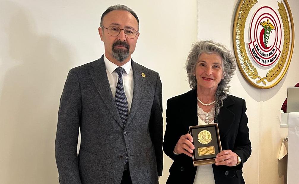 Edirne Tabip Odası’nın 14 Mart Tıp Bayramı etkinlikleri kapsamında düzenlediği Meslekte 30-40 ve 50. Yıl Plaket Töreni Edirne Tabip Odası Sosyal Tesislerinde yapıldı. Dr. İnayet Dikim’e meslekte 50 yıl plaketi Edirne Tabip Odası Başkanı Dr. Celal Karlıkaya tarafından verildi. Haber Merkezi