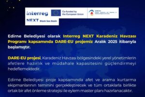 Belediye, afet hazırlığı ve müdahale kapasitesini uluslararası standartlara taşımak amacıyla önemli bir projeyi hayata geçirdi. Interreg NEXT Karadeniz Havzası Programı kapsamında desteklenen ve Aralık 2025 itibarıyla resmen başlayan DARE-EU projesi ile Edirne, bölgesel dayanıklılığın kilit aktörlerinden biri oluyor.