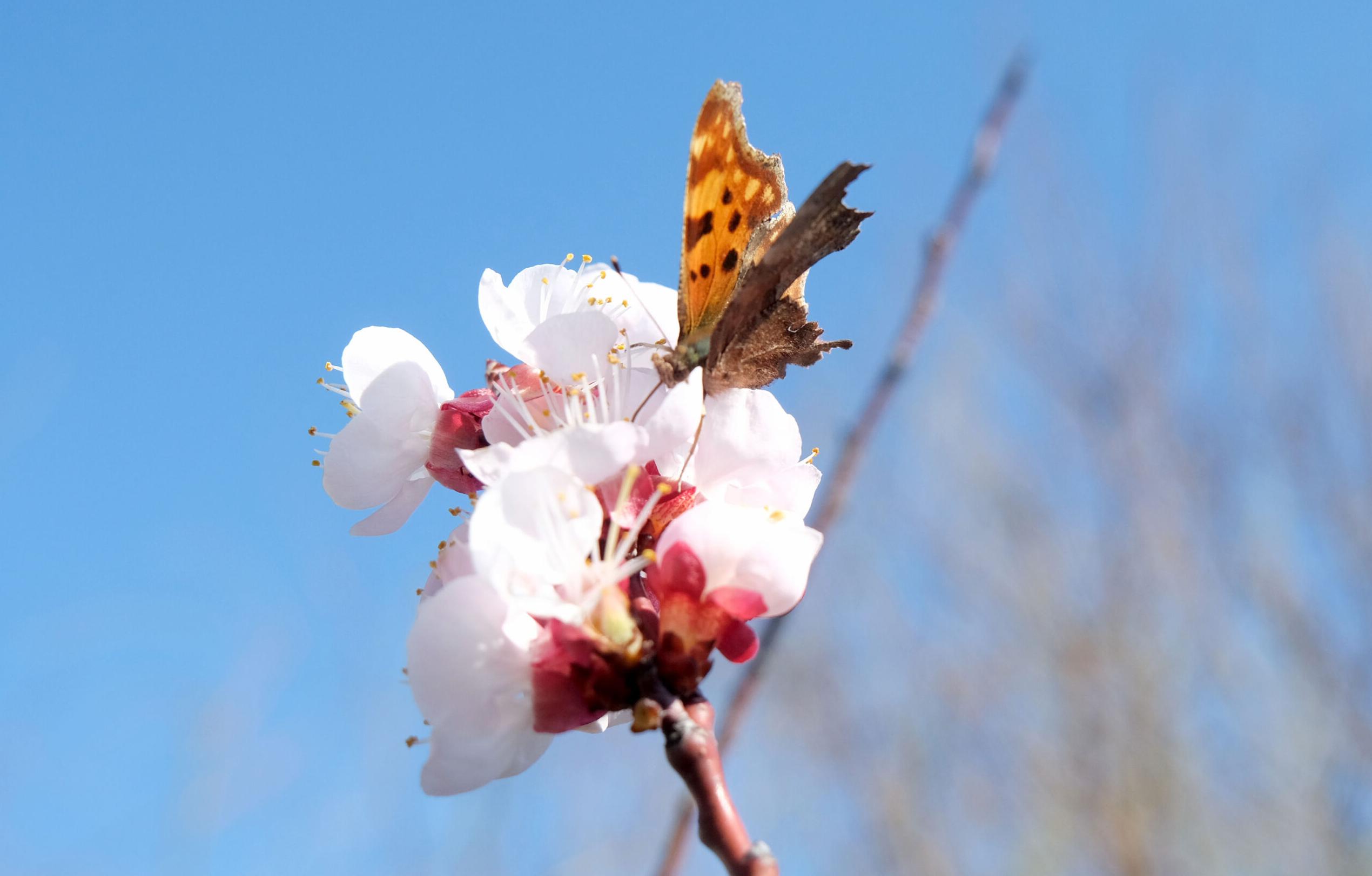 Çiçek açan erik, badem ve kayısı gibi ağaçlar, arılar ve kelebeklerle güzel görüntü oluşturdu.