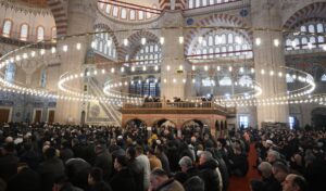 Edirne’de cemaat, ramazanın ilk cuma namazını kılmak için selatin camilerde yoğunluk oluşturdu.