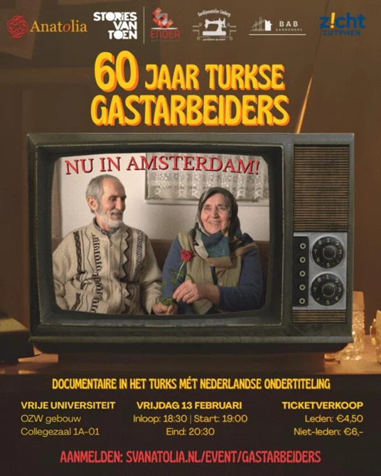 Hollanda’da altı Türk misafir işçinin altmış yıllık öyküsü. 13 Şubat Cuma günü, SV Anatolia, Stories van Toen iş birliğiyle, belgeselin özel gösterimiyle bu etkileyici öyküleri sizlerle paylaşacak…