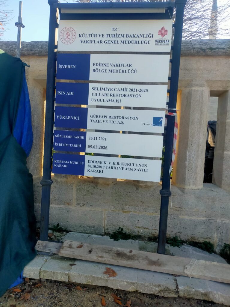 Selimiye Camii’ndeki kapsamlı Restorasyon çalışmalarına 2021 yılında başlandığını bu yıl itibarıyla da büyük oranda tamamlandığını biliyoruz. Cami girişindeki tabeladan da 05.03.2026 tarihinde bitirileceği ibaresini görüyoruz. Edirne Kültür Varlıklarını Koruma Bölge Kurulunun caminin mevcut durumuna ilişkin restorasyon projesini 19.06.2023 tarihinde onaylamış ve özellikle Kubbedeki hat ve tezyinat (göz alıcı süsler, kalem işleri) uygulamaları Aralık 2024’ te tamamlanmış.