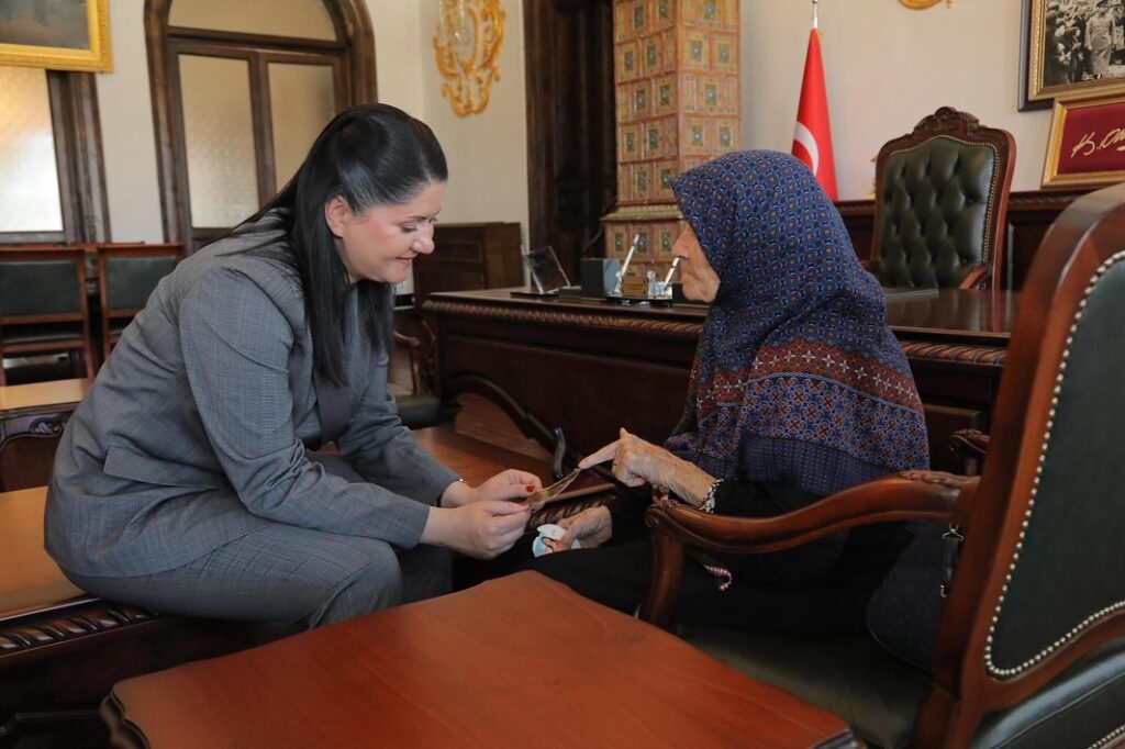 Edirne Belediye Başkanı Av. Filiz Gencan Akın, 94 yaşındaki Resmiye Yalçınkaya’yı makamında ağırladı. Başkan Akın, “Belediyemizde, 94 yaşındaki kıymetli büyüğümüz Resmiye Yalçınkaya’yı ağırlamanın tarifsiz mutluluğunu yaşadık” dedi.