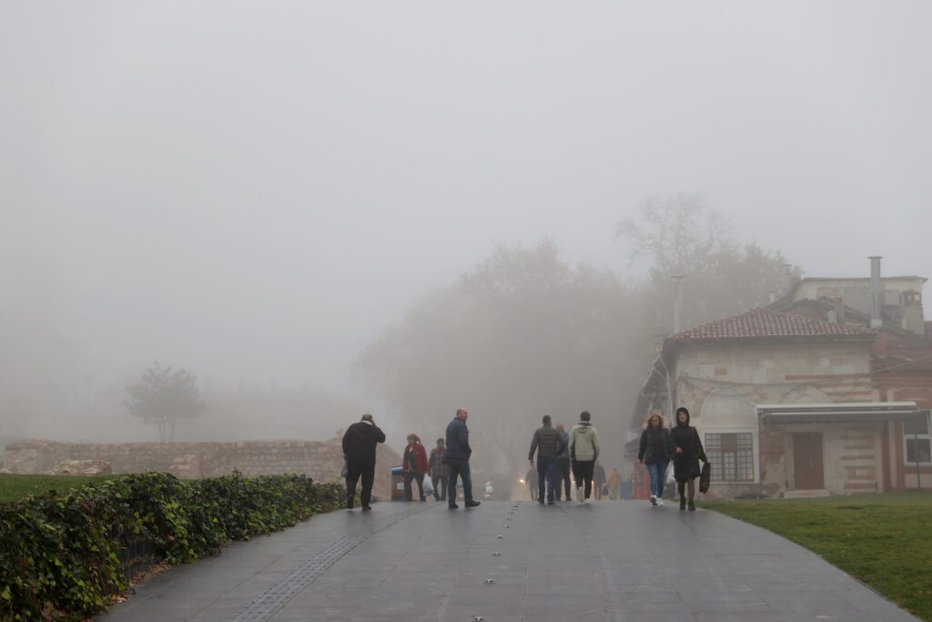 Edirneli fotoğraf sanatçıları da sisin farklı bir atmosfere bürüdüğü tarihi yapıları fotoğrafladı.