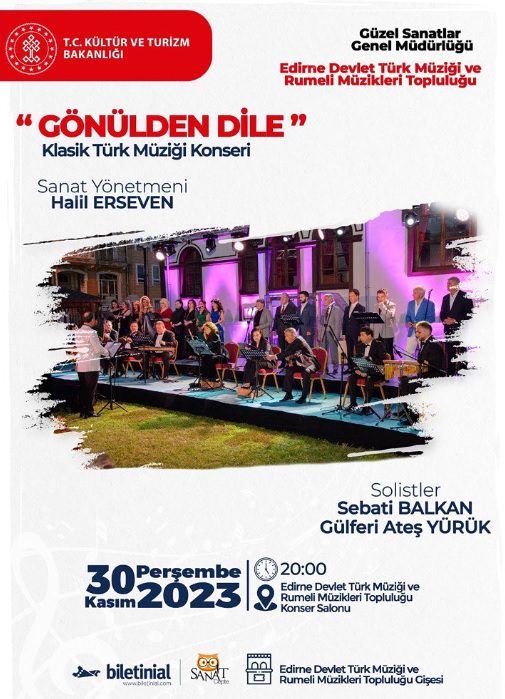 “Gönülden dile” adlı konserin sanat yönetmenliğini Halil Erseven yapacak, Sebati Balkan ve Gülferi Ateş Yürük sahne alacak.