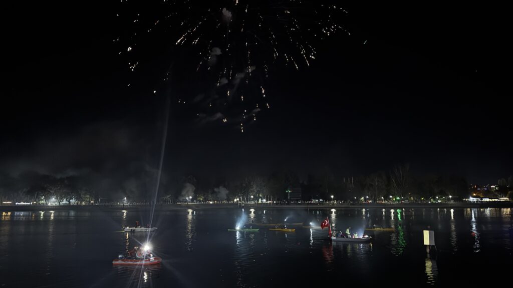 Etkinliğe yüzlerce vatandaş katılırken, katılımcılar ellerinde Türk bayrakları ve meşalelerle nehir kenarında tekneleri selamlayarak havai fişek gösterisini izledi. Meriç Nehri’nde saltanat kayıkları, amatör balıkçılar, kürek takımı, AFAD, Jandarma ve Emniyet Müdürlüğüne ait kayıklar muhteşem bir gösteriye imza attı.