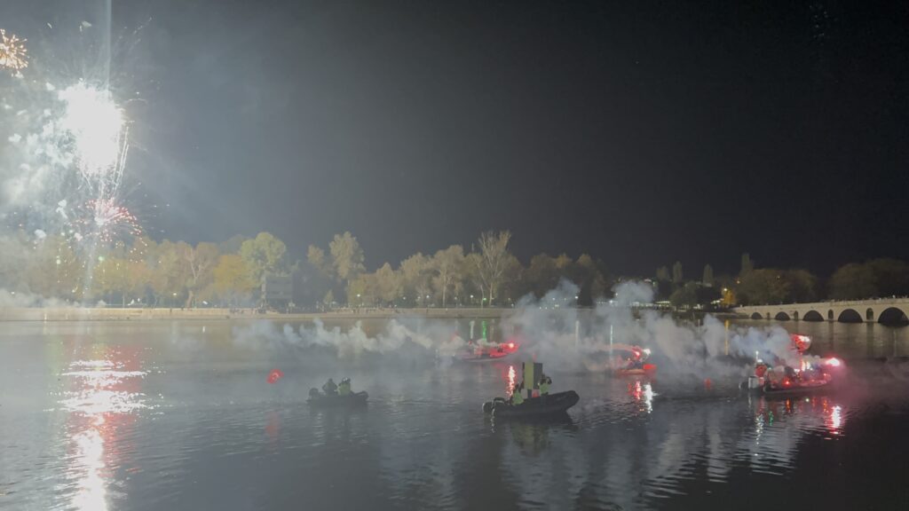 Edirne Valiliği tarafından, Cumhuriyet’in kuruluşunun 102. yılı kutlamaları kapsamında, Meriç Nehri’nde teknelerle fener alayı ve havai fişek gösterisi düzenlendi.