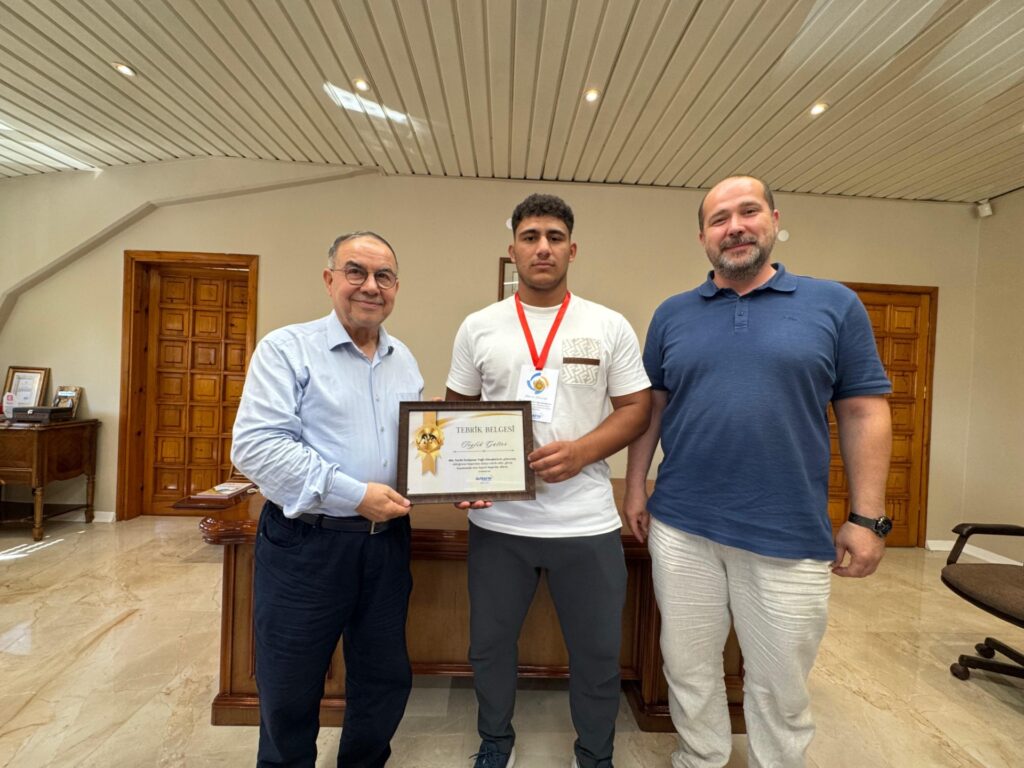 664. Tarihi Kırkpınar Yağlı Güreşleri’nde dereceye giren Edirneli pehlivanlar Teyfik Gülter, Aydıncan Gümüşdağ ile Yiğit Kartal, Öztrakya A.Ş. Yönetim Kurulu Başkanı Mustafa İriş tarafından tam altınla ödüllendirildi.
