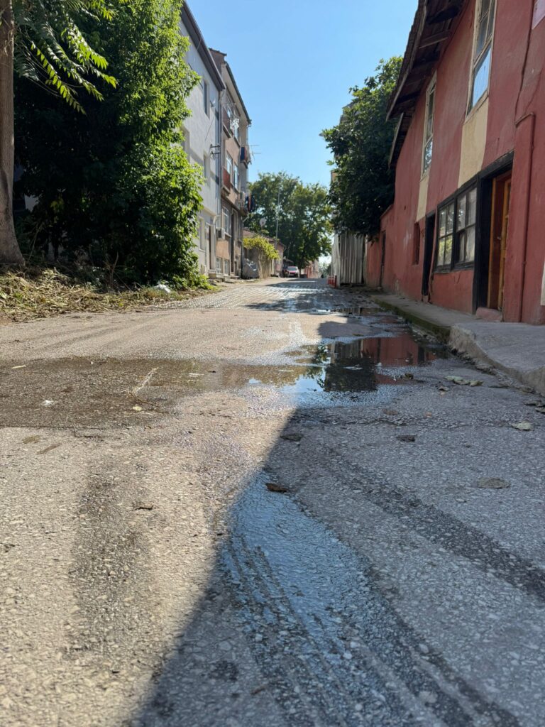 Edirne’nin Dilaverbey Mahallesi Kamberdede Türbe Sokakta yola akan atık su, mahalle sakinlerinin tepkisine neden oldu.