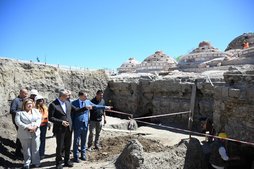Edirne Valisi Yunus Sezer, hamamdaki restorasyon çalışmalarını inceledi. Tarihi yapıyı gezen Vali Sezer, Edirne Vakıflar Bölge Müdürü Ahmet Saraç’tan ihya çalışmaları hakkında bilgi aldı.