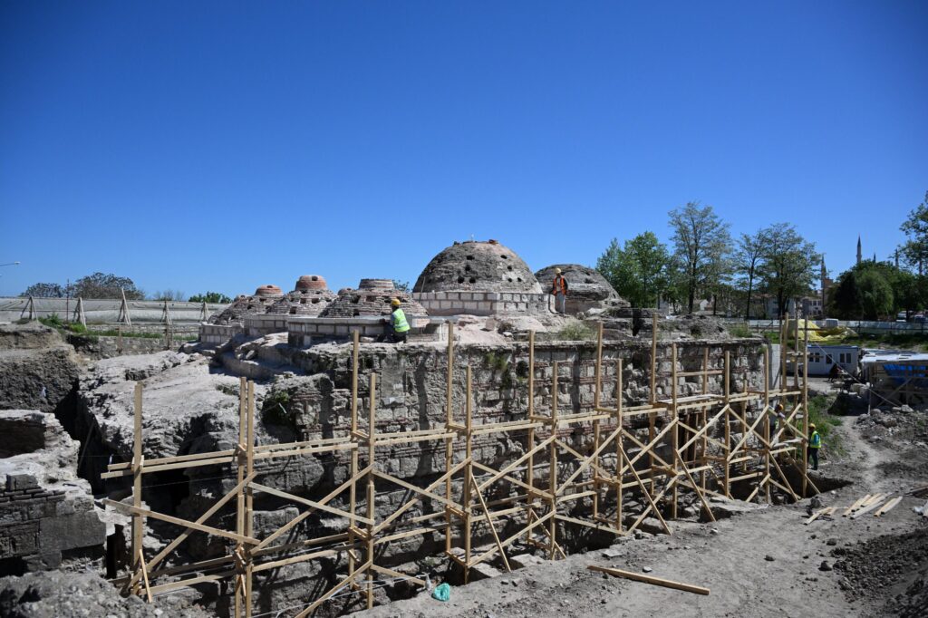 Edirne’de 15. yüzyıl yapısı Gazi Mihal Hamamı’nın ayağa kaldırılması için başlatılan restorasyon çalışmaları sürüyor. Vali Yunus Sezer’in talimatıyla geçen yıl şubat ayında başlayan ihya çalışmaları kapsamında, tarihi yapının çevre temizliği ve toprak altında kalan bölümlerinde kazı çalışmaları yapıldı. Kazı çalışmalarının tamamlanmasının ardından ekipler, yapının iç ve dış mekanında restorasyon çalışmalarına devam ediyor. Erken dönem Osmanlı mimarisinin en önemli hamamlarından olan yapı, müze olarak işlevlendirilecek.